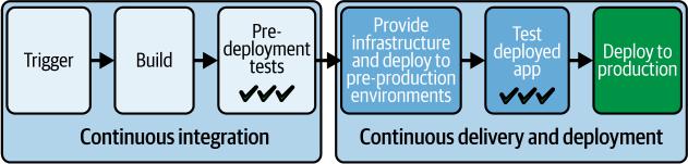 在每个开发周期结束时交付”可能可发货的产品”是另一个关键的敏捷实践。可能可发货简单意味着可靠、经过测试、打包好的可以部署到生产环境的软件。(实际上,许多采用CD的组织只在内部交付,并继续不频繁地部署到生产环境。持续交付并不等同于持续部署。)