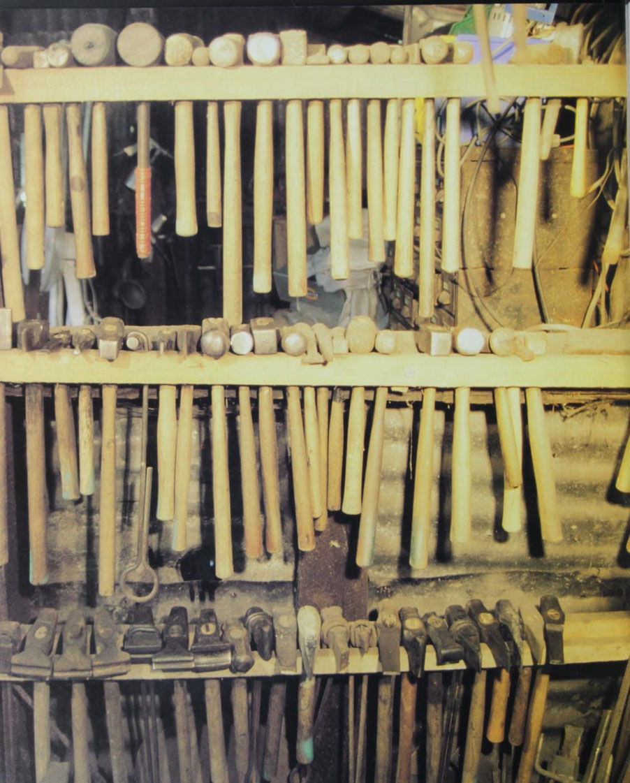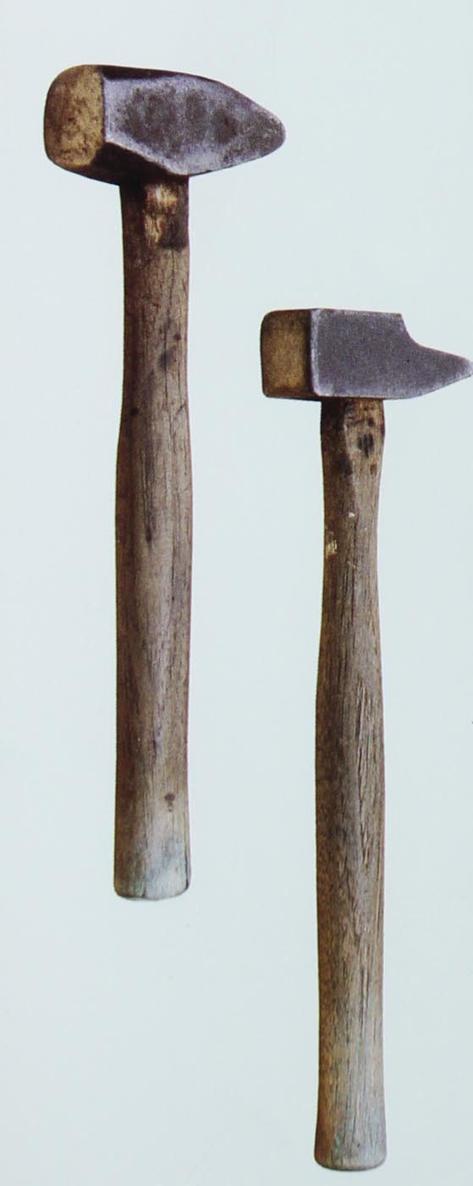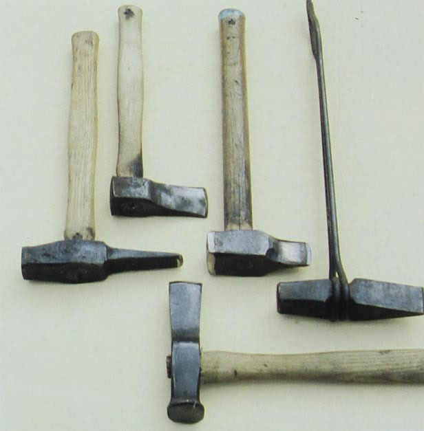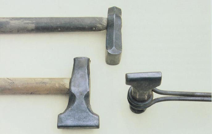 在我的书架上有一本为1980年大英博物馆”维京人”展览出版的书,其中包括一张照片,展示了一组留在十世纪挪威武器铁匠墓中的工具。那些钳子、锤子和凿子与我今天在工作坊使用的工具几乎完全相同,时隔整整一千年。