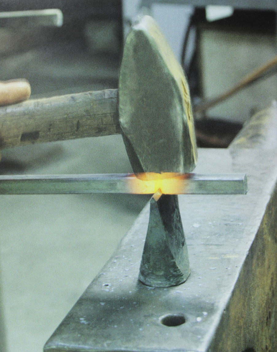 铁匠工艺提供了一种加工金属的方式,产生的形式和品质远比我们机器制造环境的产品更具个性。用锤子塑造热金属具有自由和自发性。每一次敲击都会留下痕迹并对结果产生影响。每个铁匠都会以自己的方式敲击金属,留下特有的锤痕”指纹”。你不必刻意追求这一点,它会自然而然地呈现。