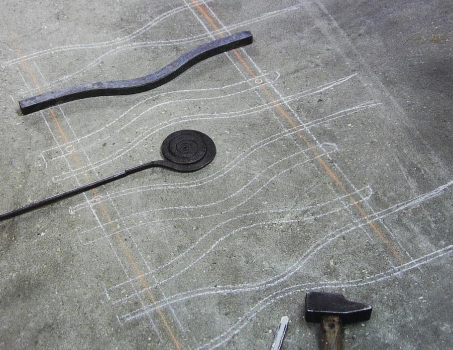 良好平整坚固的地板很重要,尤其是因为锻造设备很重并且会受到冲击。光滑的混凝土地板防火,便于移动设备,并且可以用粉笔划线作为特定工作的指引。如果地板既平整又水平,就可以使用水平仪来检查工件,从屋顶悬挂的铅垂线将与地面成直角。这对于确保直立的部件——例如落地灯的支柱——相对于其底座设置得真正垂直非常有用。