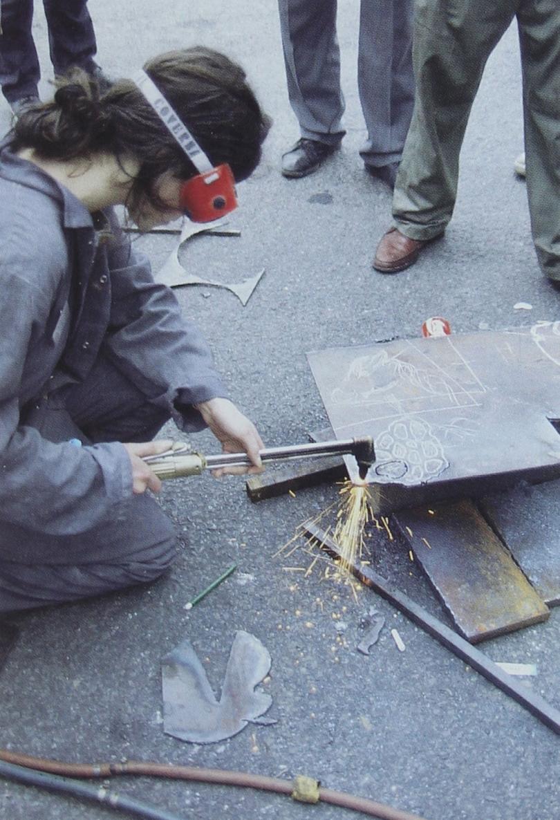 Alan Evans的雕塑作品,由钢管气割而成,加热并塑形。