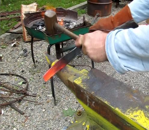 当您对刀刃施加锤击时,钢材会向刀背推进。此时,确保形成一个良好的楔形,连接刀刃的切割边缘。