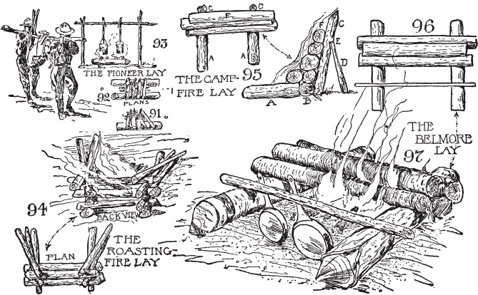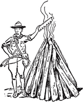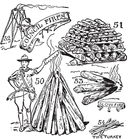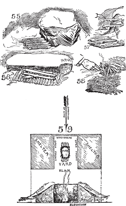 一次与新手的经历。现代人对体力劳动的恐惧。火柴。生火器和巴比伦人。营地跳动的心脏。松树胶质柴束。如何在潮湿天气生火。荒野人的火。小引火柴的必要性。好柴火。劈柴的优势。火架。如何开刀。如何削木,如何用刀劈棍子。篝火和议事火。营地会议火把火。爆炸的石头。火的特性。慢火、信号火和熏火。