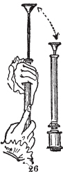在美国独立战争前后,某位绅士发明了火活塞([图26]),通过突然压缩空气产生的热量来点燃真菌制成的火绒(punk)。