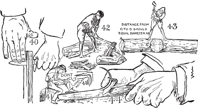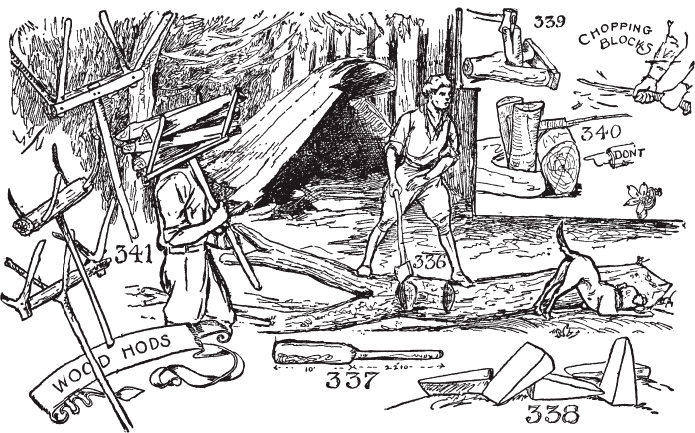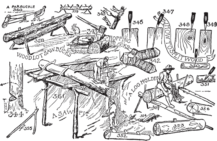 我们最伟大的斧手。斧头的重要性。使用什么样的斧头。如何挥舞斧头。如何移除断裂的斧柄。如何在斧头中固定手柄。意外事故。斧头的头脑。斧头礼仪。如何磨斧头。如何”砍倒”一棵树。如何清理枝条。如何制作甲虫或大锤。如何硬化绿木。如何制作柴火架。如何制作砍木块。正确的砍伐方法。如何为原木制作锯架。如何使用帕巴克尔绳结。如何劈开原木。如何使用锯坑