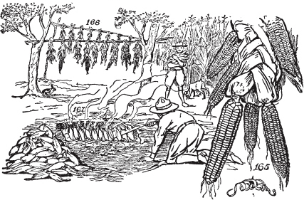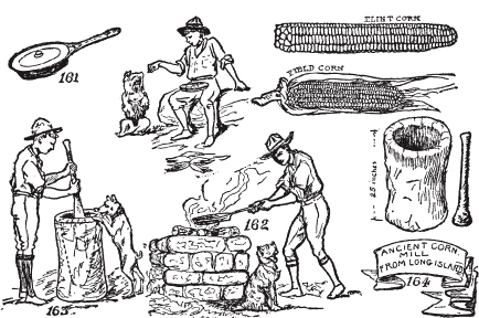 如何制作灰饼、玉米饼、玉米团子、薄煎饼、约翰尼饼、饼干和面团神。制作荷兰烤炉。鹿肉。野外宴会。如何烹饪海狸尾、豪猪和麝鼠。营地炖菜、不伦瑞克炖菜和伯古炖菜。