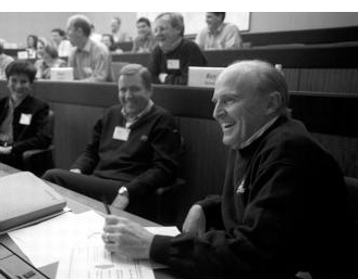 在本顿维尔向山姆·沃尔顿和沃尔玛团队学习”快速市场情报”(quick market intelligence)。未来的GE副董事长约翰·奥皮在最左边。