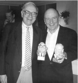 与任何房间里最聪明的人在一起。沃伦·巴菲特和我在佛罗里达弗兰克·鲁尼家,拿着《财富》杂志的”最受尊敬”漫画像开心合影。