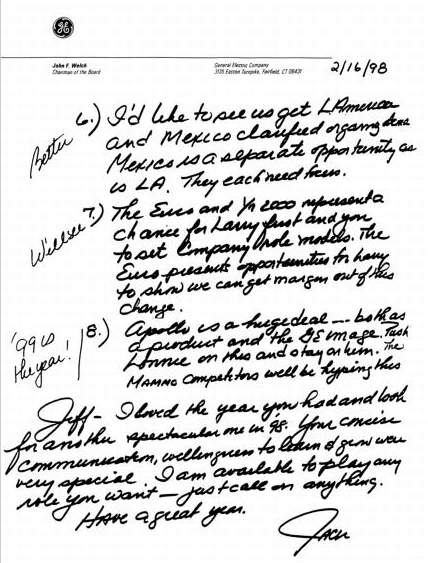 尽管如此,我总能感受到与雷吉之间的某种共鸣。他很少流露感情,从不给出任何暗示。但我有一种感觉,他理解我。在某些方面,我们是志同道合的人。我们尊重彼此的差异,也有一些重要的共同点。我们都喜欢分析和数字,都会做足功课。我们都热爱通用电气。他知道公司必须改变,他认为我有激情和智慧来推动这种改变。