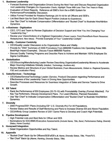 让我试着描述一下我们所说的”现实”是什么意思。这听起来可能很简单,但让任何组织或群体看到世界的本来面目,而不是他们希望的样子或期望的样子,并不像听起来那么容易。我们必须在公司每个人的头脑中渗透一种态度、一种氛围,让人们——实际上是鼓励人们——看到事物的本来面目,处理现实情况,而不是他们希望的情况。在整个组织中建立这种现实概念,是执行核心理念的前提——即在我们所做的每件事上都必须成为第一或第二——否则就要采取行动。