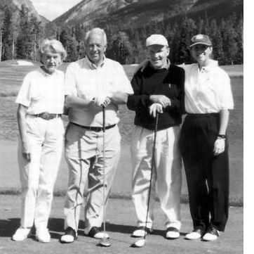 简和我与GE董事会成员、好友西·卡斯卡特及其妻子科基在加拿大落基山脉打高尔夫。