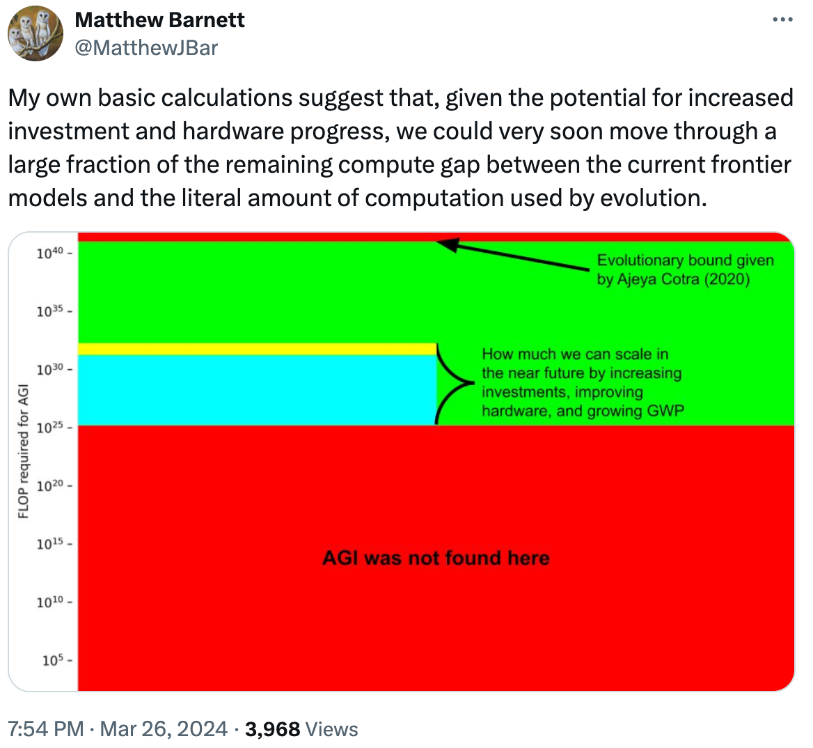 即使现在,几乎没有人将所有这些都计入定价。但关于AI的态势感知实际上并不那么困难,一旦你退后一步看看趋势。如果你一直对AI能力感到惊讶,那就开始数数量级吧。