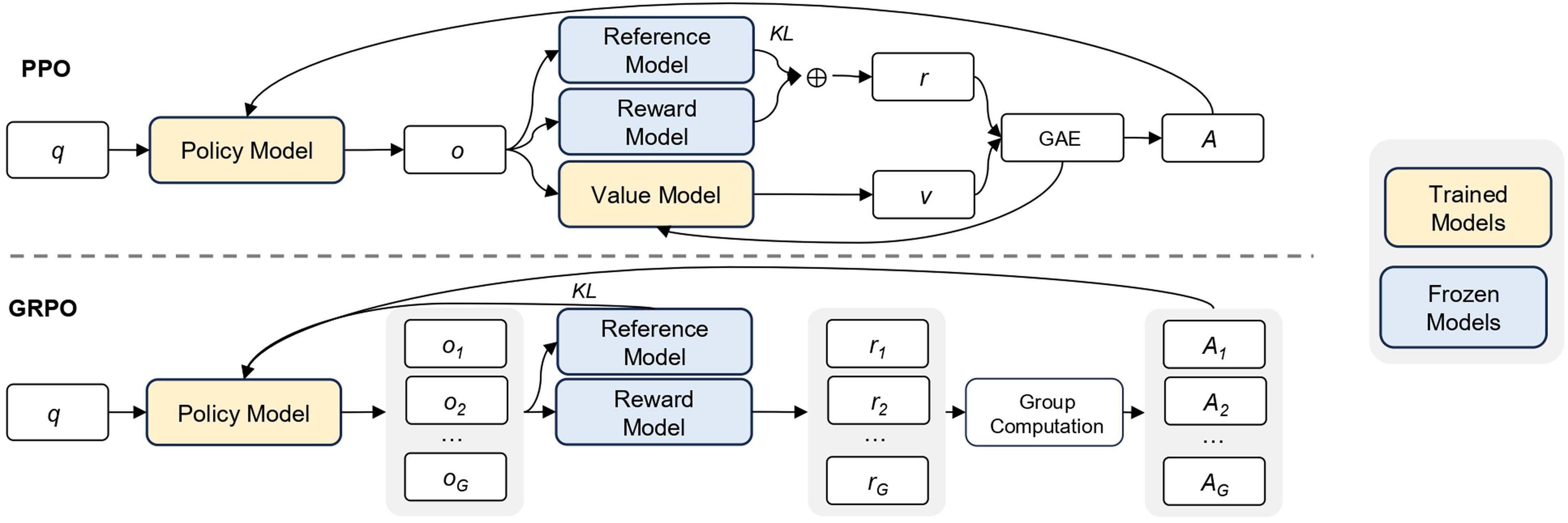 我们在补充信息第1.3节中给出了GRPO和PPO的比较。