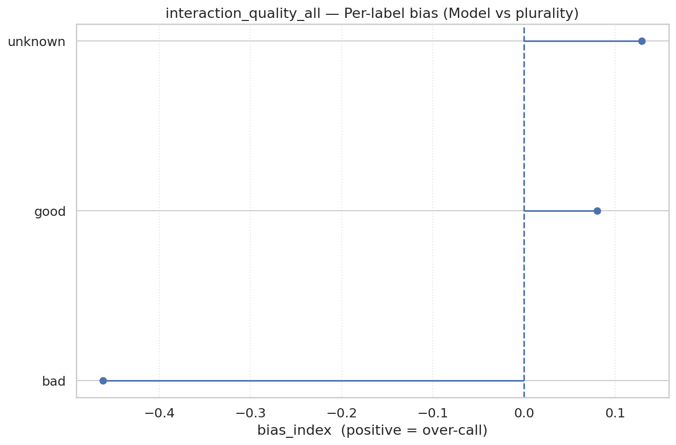 如表 5 所示,模型-多数一致性很高(Cohen’s κ = 0.83),超过了平均人-人一致性(κ = 0.66)。图 25 中的热图表明与人类多数标签密切一致,系统性偏差有限。