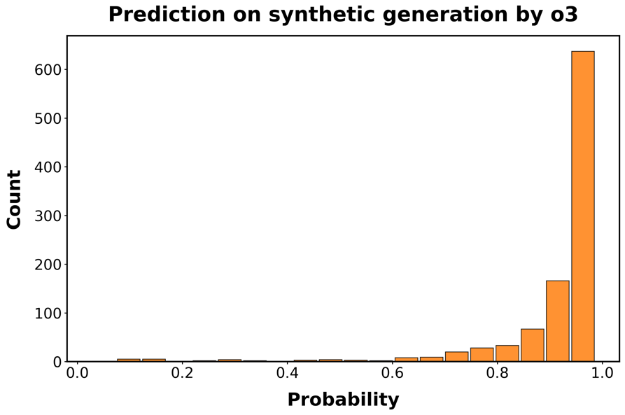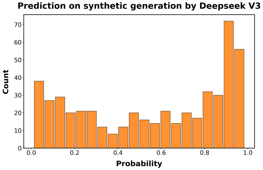 我们用于训练监督模型以检测 AI 生成的 Python 函数的真实数据(ground truth data)结合了多个来源。我们首先从三个不同的数据集中收集由人类编码者创建的函数。第一个数据集从 GitHub 随机抽样在 genAI 编码工具引入之前创建的 Python 函数。特别是,我们抽样 2018 年创建的 python 函数。第二个和第三个数据集是 HumanEval [[49]] 和 HumanEval-X [[50]],这两个数据集最初都是为了评估和测量代码的功能正确性而创建的。这三个数据集合计包含近 4,000 个人类编写的 Python 函数。添加后两个数据集确保我们用于训练模型的人类制作的 Python 函数包括在不同年份创建的示例,包括 genAI 工具变得更广泛可用的年份。接下来,受 [[29]] 启发,我们使用 GPT3.5-turbo (50%)、GPT-4o-mini (30%) 和 GPT-4 (20%) 生成由不同 LLM 编写的 Python 函数的合成数据集。为此,我们使用结合两个 LLM 的 LLM 链创建上述人类编写函数的合成克隆,模仿最近的 LLM Agent 工具。每个 LLM 执行不同的任务。第一个 LLM 被提示根据给定人类制作函数的功能以及所需输入和生成输出的结构来描述它。第二个 LLM 被要求阅读此描述,然后生成完成相同任务的函数。确切的提示(prompts)和输出示例列在补充材料的表 [S1] 中。训练集的总大小约为 8,000 个函数。